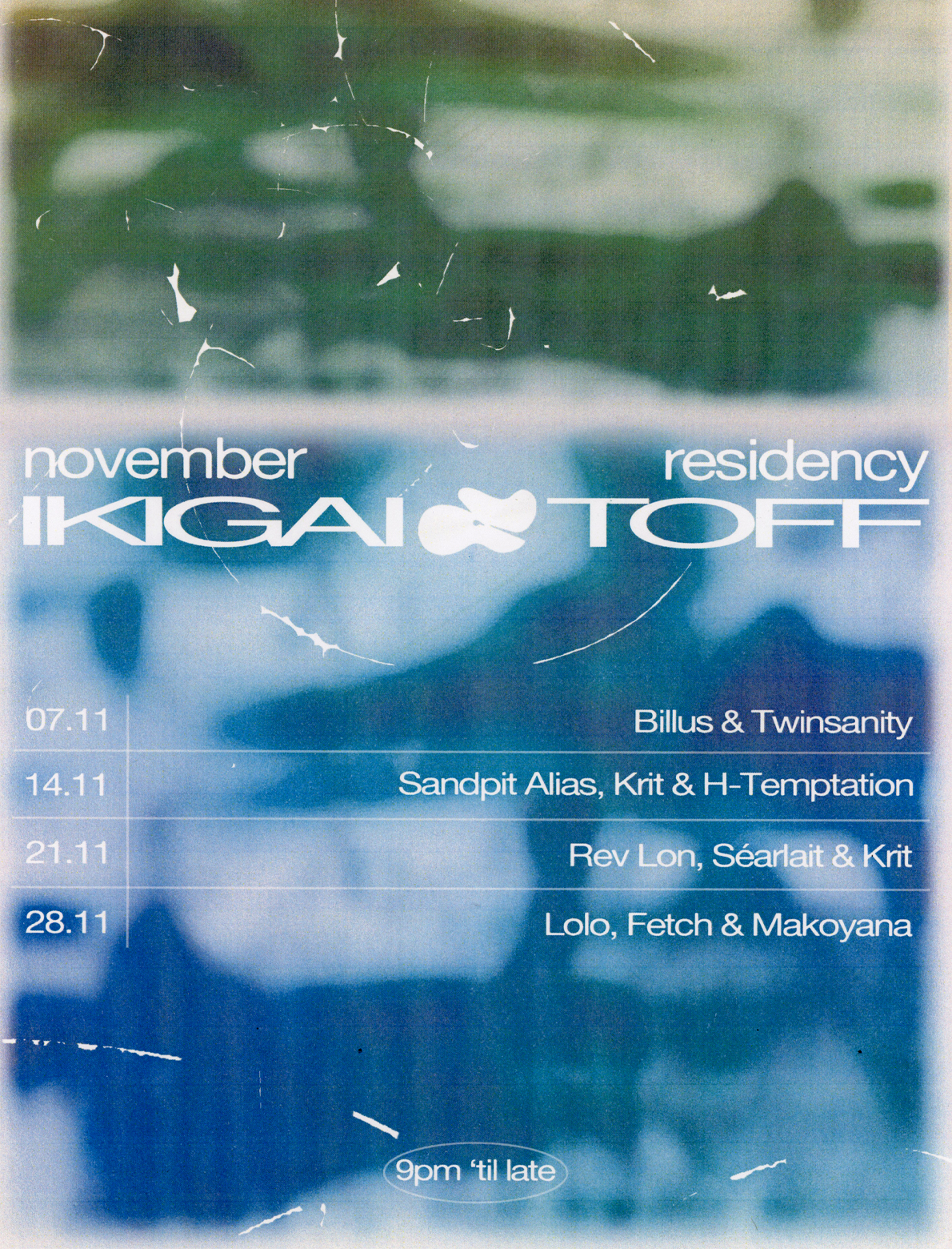 Ikigai is pleased to present a takeover of The Toff carriage side for all Friday nights in November. This residency showcases many of our regulars and personal favourites in addition to some new faces that have been making waves recently. Expect thoughtfully curated sets from some of the city’s finest connoisseurs of deep house, minimal and techy cuts from 9 until late.