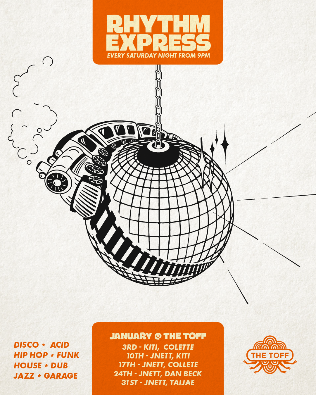 Join the inimitable DJ JNETT and friends as they take you on a musical journey from Disco, Acid, Hip-Hop, Funk, House, Dub, Jazz and Garage, carefully curated by the best selectors in town.