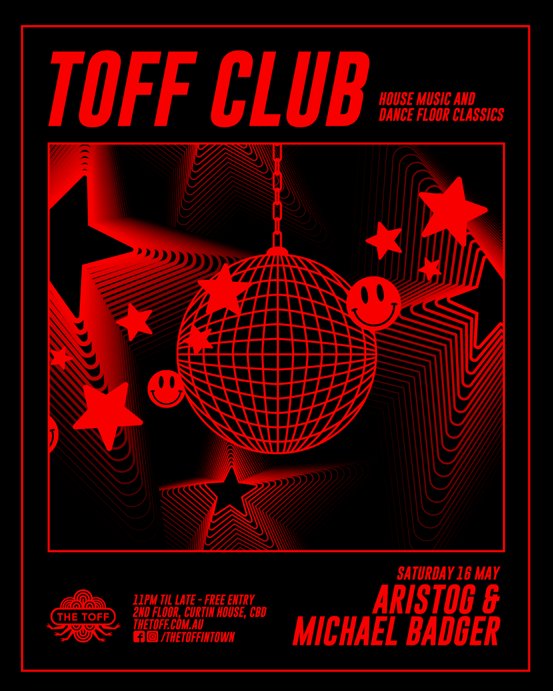 From 11pm, the dancefloor comes alive as local selector Aristog joins forces with ARIA Award-winning producer Michael Badger, delivering a seamless blend of house music and timeless dancefloor classics. 🔥